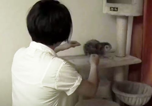 等到猫咪累了,小姐姐终于腾出手去打开笼子示意猫咪进去。当猫咪不情不愿地进去后,小姐姐刚要合上笼子,又被突然窜起的猫咪袭击,手套差点被抓破。